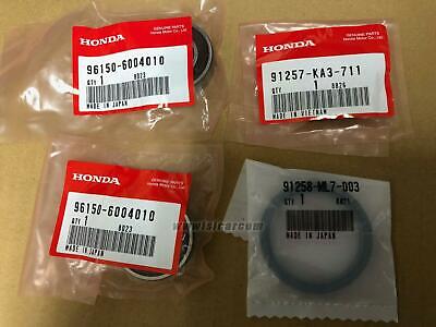 FRONT WHEEL BEARING AND DUST SEAL SET This set contains: 1. Radial ball bearing: 6004UU Part number: 96150-60040-10 (x2 pcs) 2.Dust seal: 28X42X8 Part number: 91257-KA3-711 3. Dust seal: 45X55X5 Part number: 91258-ML7-003 Total: 4 pcs These are new genuine parts. Manufactured by Honda.